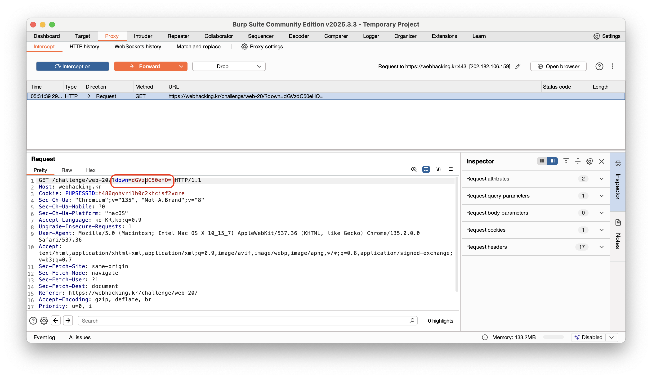 여하튼 test.txt 다운로드를 눌러주고 Burp Suite에서