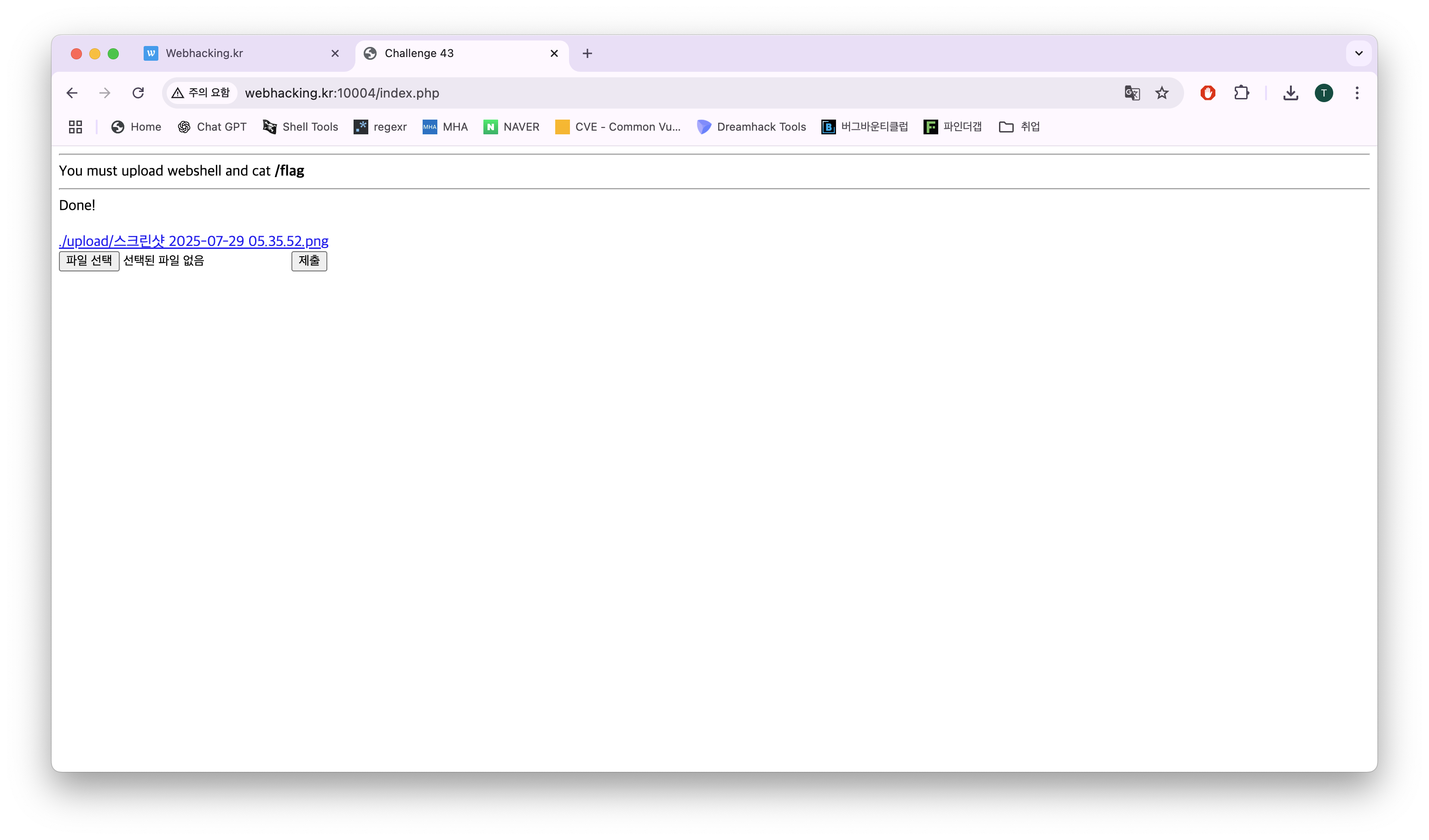 이새끼는 왤케 빨리 풀지? 라고 생각 하실수 있는데 당장 LG CTF 할때 File Upload문제 6시간걸려서 풀었습니다.. 그것도 도움 좀 받고.. 허ㅓㅎ
