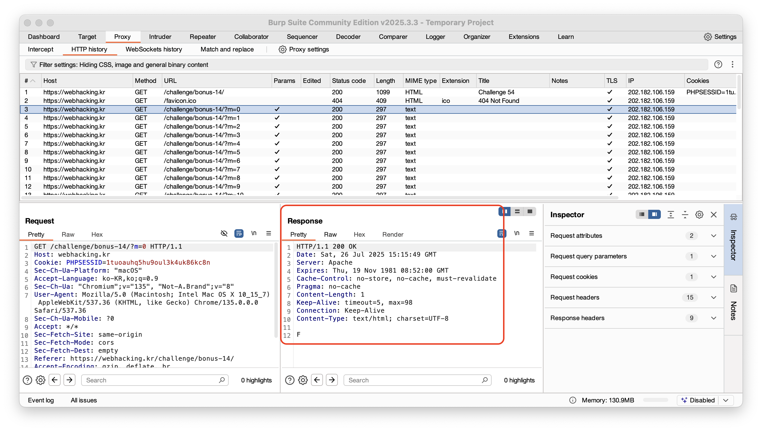 보면 HTTP history에 Response 된걸 보면 글자가 하나씩 응답하는것을 볼 수 있다.
