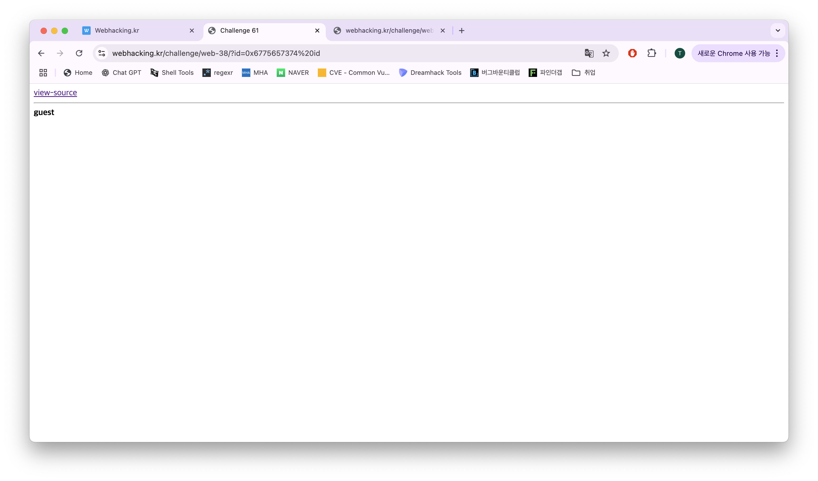 이 말은 guest가 컬럼명으로 인식되어 chall61테이블에 guest라는 컬럼명이 없으니 당연히 false로 되어 아무것도 출력되지 않는다.