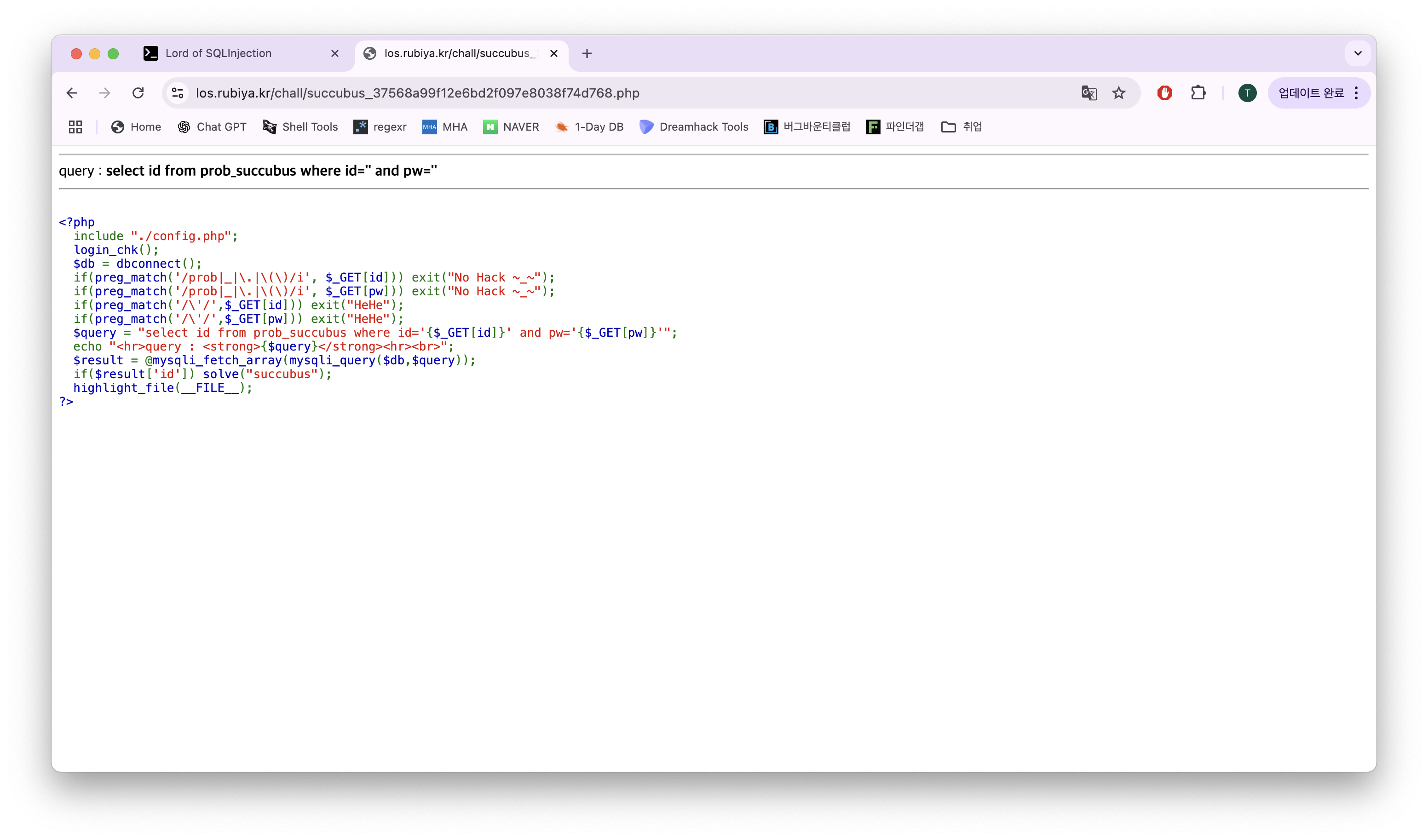 $query = "select id from prob_succubus where id='{$_GET[id]}' and pw='{$_GET[pw]}'";