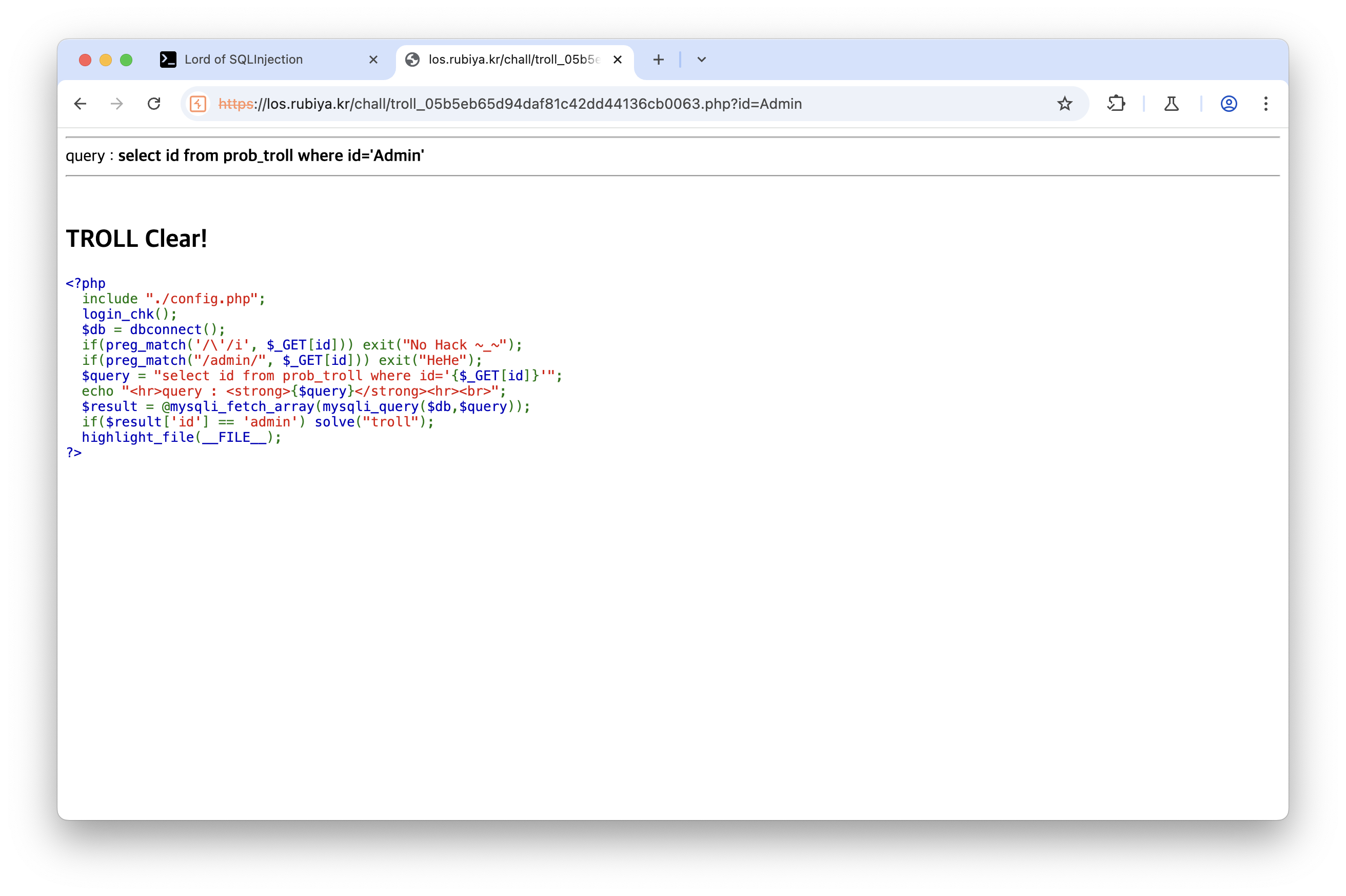 $query = "select id from prob_troll where id='{$_GET[id]}'";
