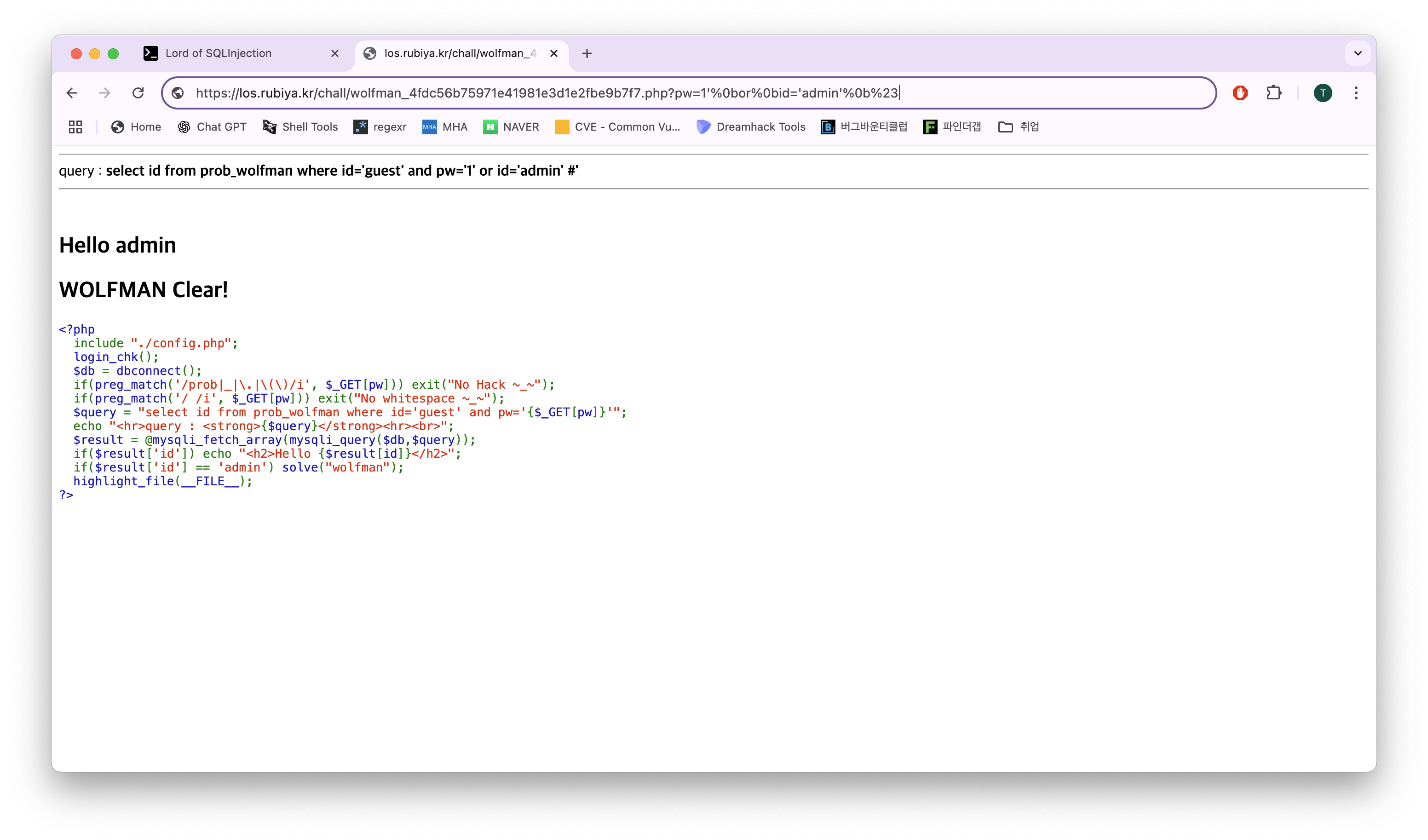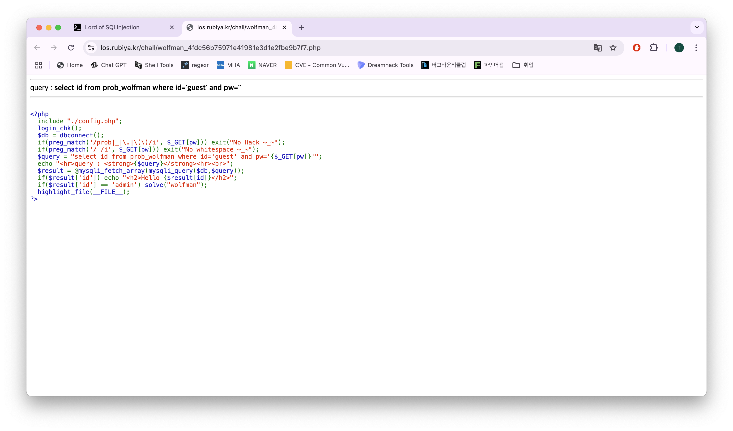 LoS(Lord of SQL Injection) Wolfman Write-up