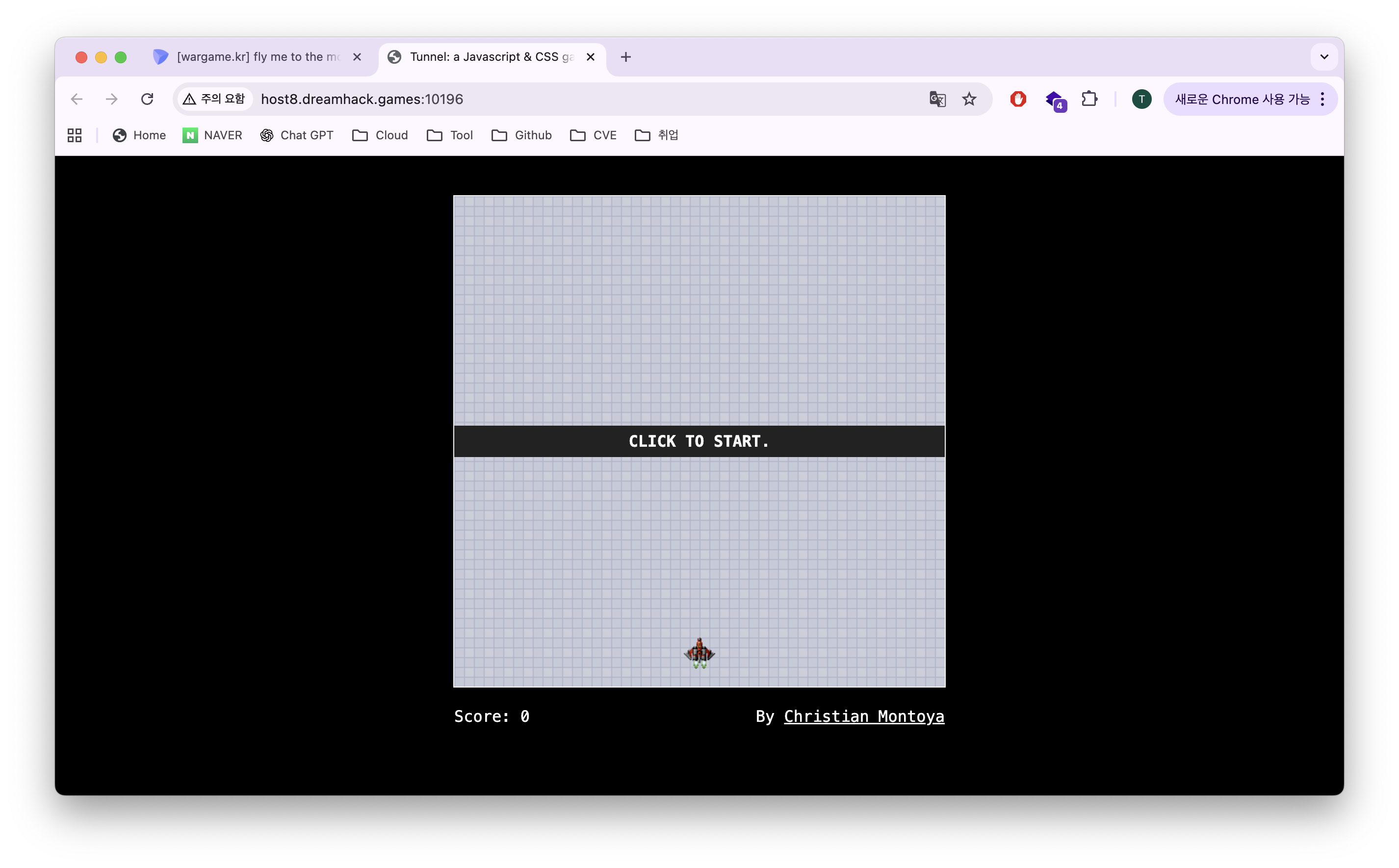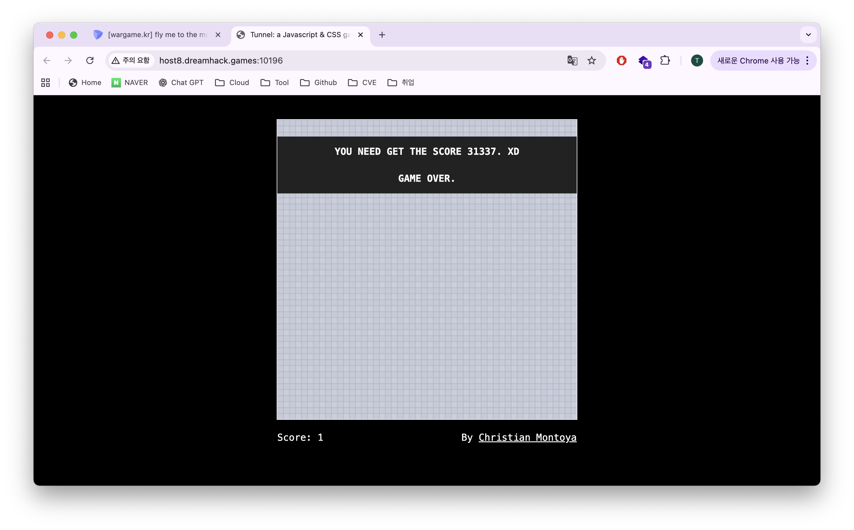 점선에 닿이니 게임오버가 뜨면서 31337점을 얻어야 한다고 한다.