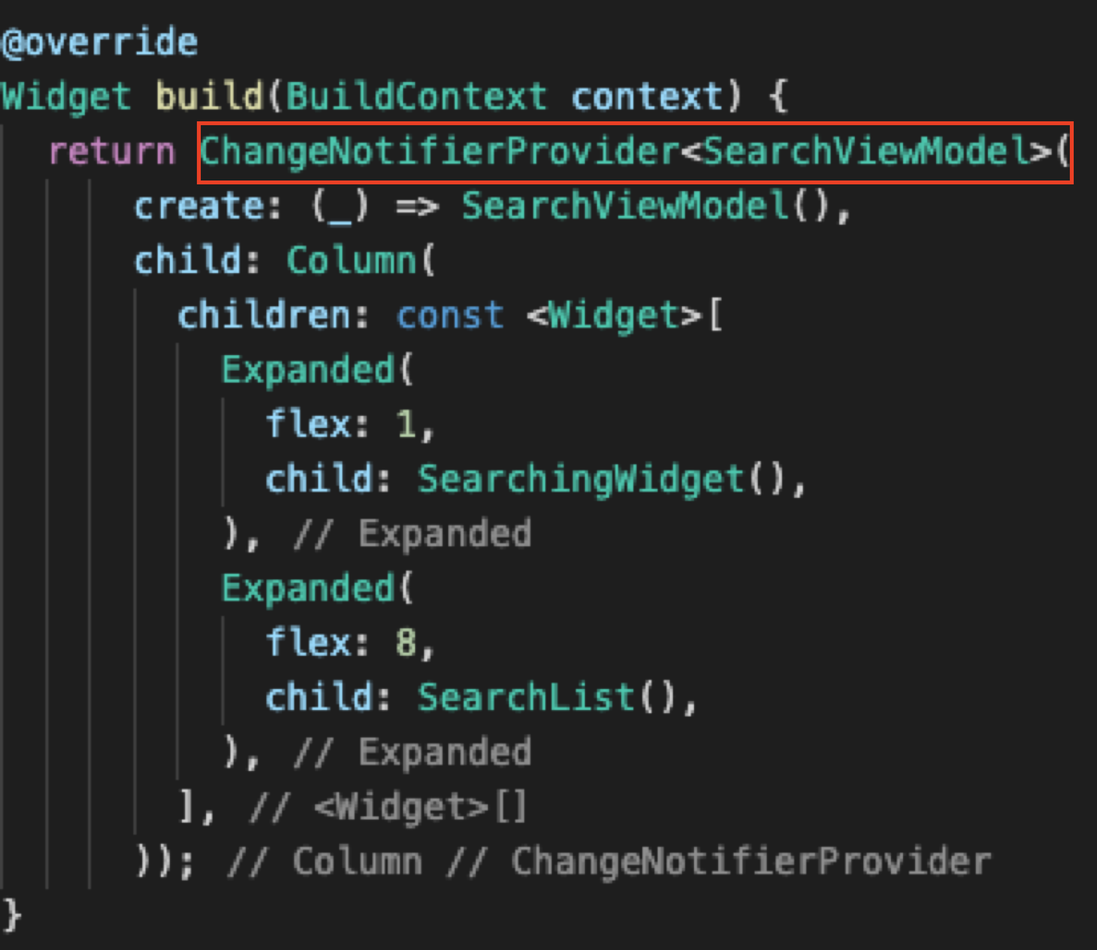 아래와 같이 Widget에 ViewModel을 Provide해준다.