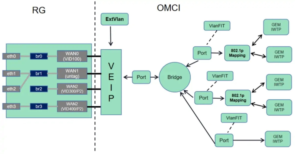 PPTP is that OLT directly sends VLAN data to each physical interface of ONU, fixing the whole processing process of data flow. VEIP virtualizes the total interface of an ONU. OLT and ONU conduct data docking through VEI. The services under VEIP are managed by ONU through their configuration. In short, PPTP is a LAN port, and VEIP is the virtual WAN port in HGU.