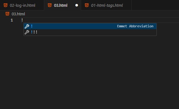 위 그림처럼 !를 입력하면 자동완성 추천 선택지가 뜬다. 그대로 엔터키를 누르면 선택된다.