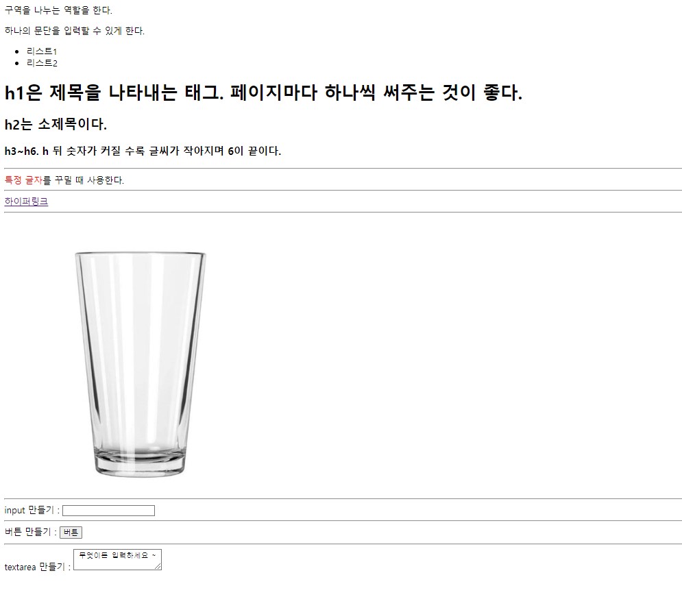 <h1>h1은 제목을 나타내는 태그. 페이지마다 하나씩 써주는 것이 좋다.</h1>