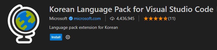 VSCode 메뉴와 설명을 한글로 변경해준다. 초보자들 입장에서는 한글이 더 편리할 것이라 생각할 수도 있다. 하지만 온라인에서 코딩과 관련된 자료들이 영어로 된 것들이 많아서, 이를 참고하려면 영문으로 쓰는 것이 오히려 더 편리한 경우가 많다. 따라서 실무에서는 영문으로 쓰는 경우가 더 많기 때문에 한글 패치는 추천하지는 않는다. 영어에 유독 약한 사람들에게만 추천한다. 되도록이면 처음부터 영문 버전에 익숙해지도록 하자.