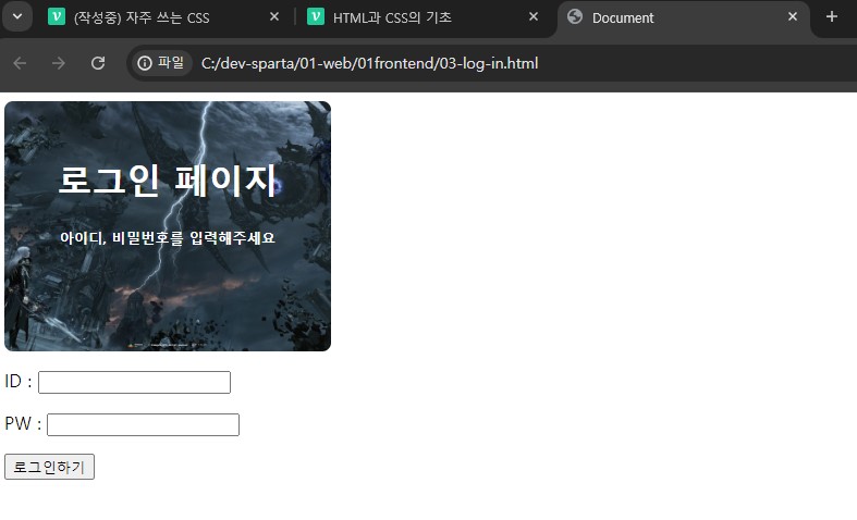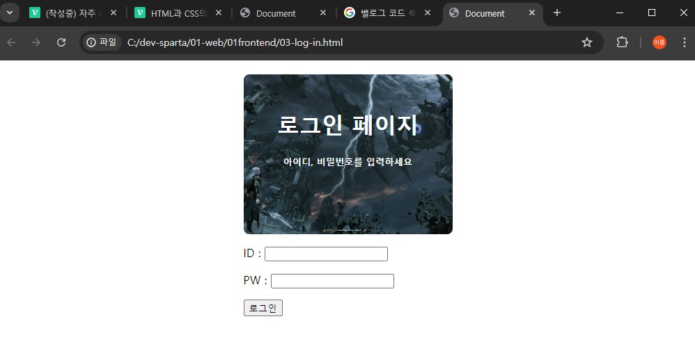 완성되고 보니 로그인 구성요소들이 화면 왼쪽에 쏠려있는 것을 볼 수 있다. 이번에는 이것을 가운데로 정렬하는 방법을 생각해보자.