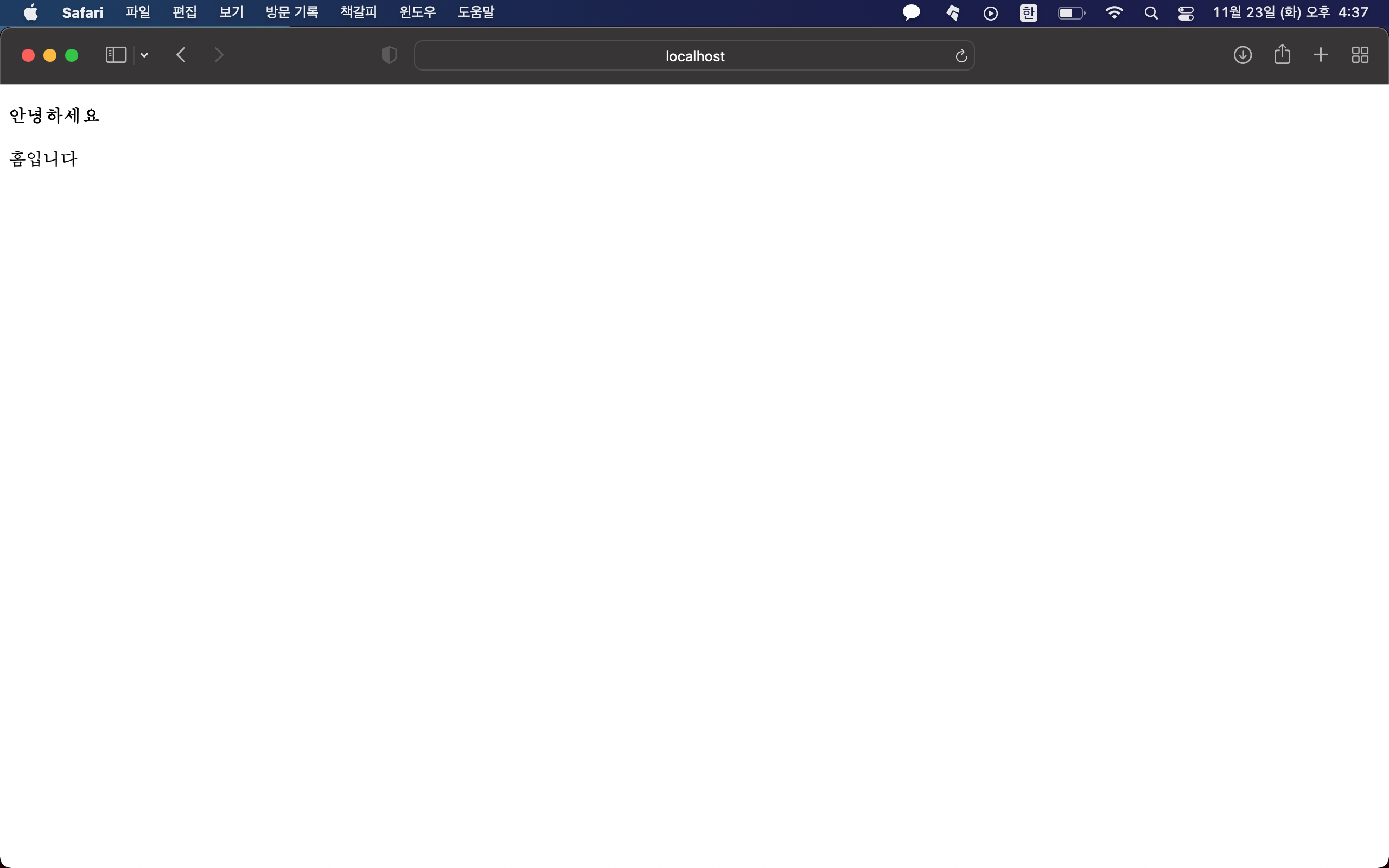 이렇게 하면 'index.html'파일의 내용을 그대로 보여준다.