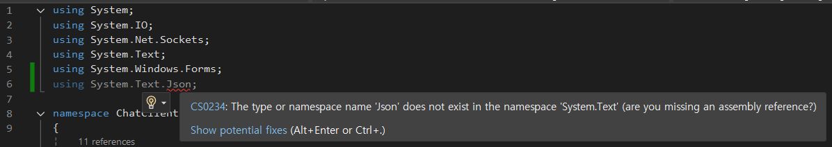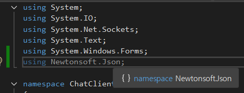 C# 애플리케이션을 제작하면서 json 사용을 위해 아래 네임스페이스를 포함하려 해도 불가능한 경우가 있다.