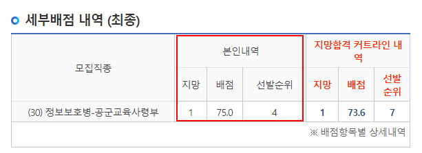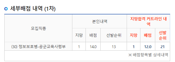 2.) 1차 합격 때는 선발 순위가 13위였다.