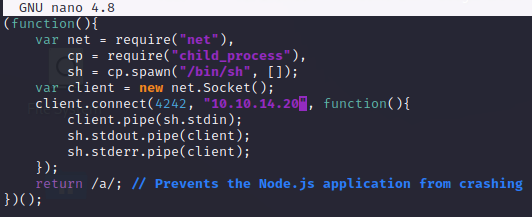 29.) nano payload.js로 파일을 생성하고, 코드를 입력한다.