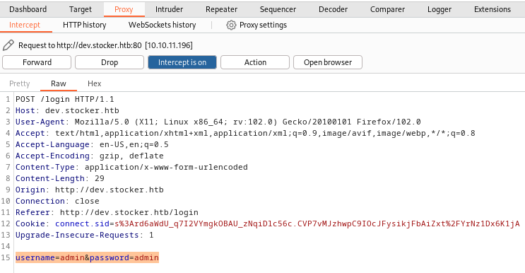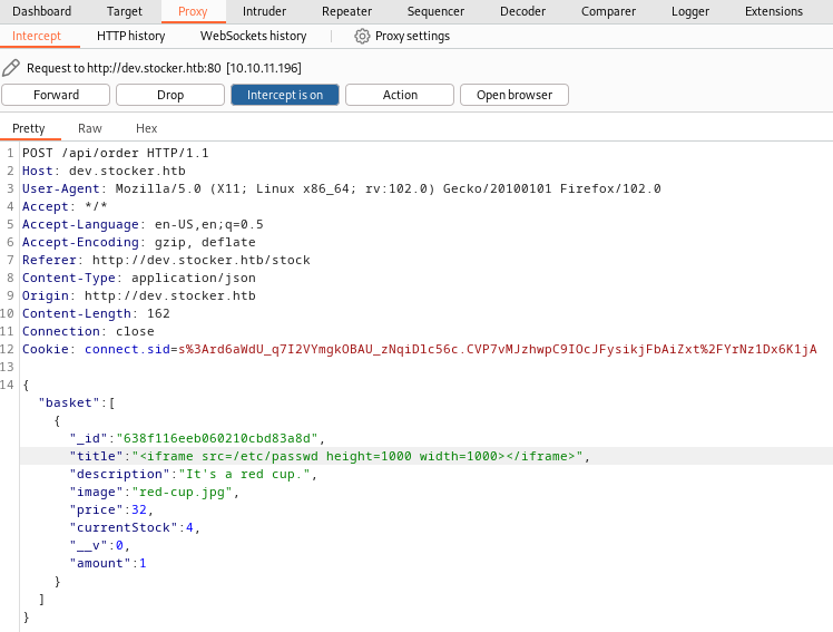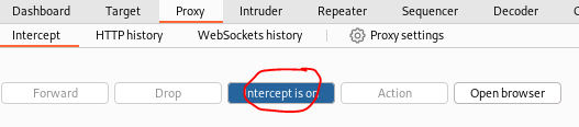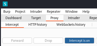 11.) 버프 스위트를 실행한다음 Proxy에서 Intercept is on을 해준다.