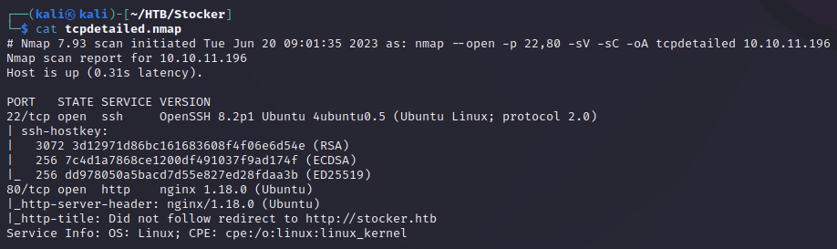 22, 80포트가 open되어있고, ssh와 http가 있다.