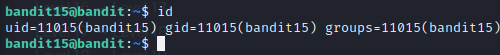 - bandit 15에 로그인이 잘 된걸 볼 수 있다.