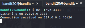 - 요상태에서 bandit20에서는 nc로 포트를 여는 것이다.