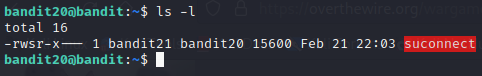 - 그래서 bandit20의 비밀번호를 입력해주면, bandit21의 비밀번호를 넘겨 받았다.