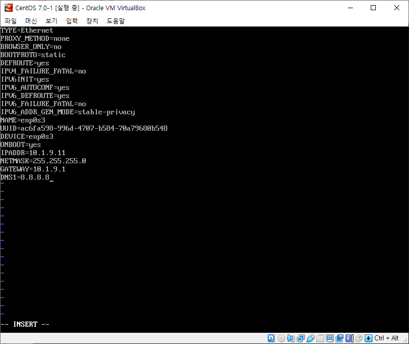 IPADDR=10.1.9.11 --> 사용중이지 않은 IP
