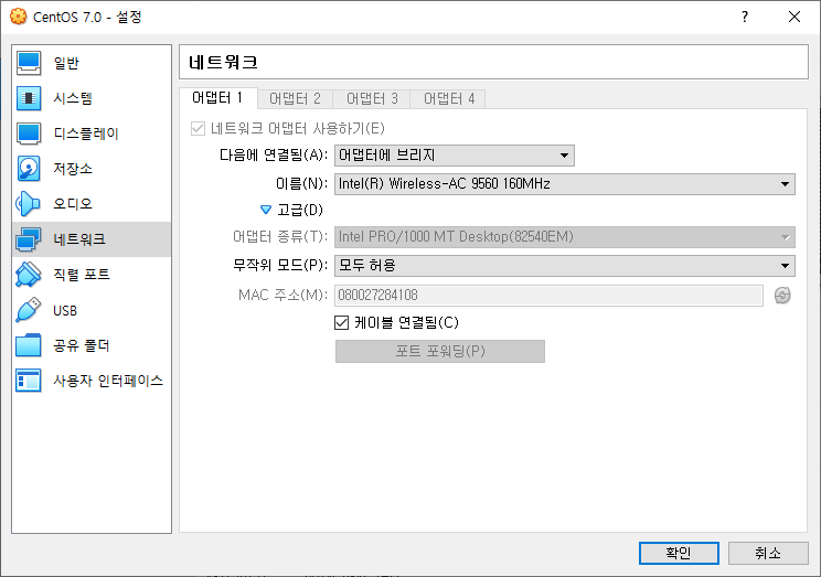 네트워크 : 다음과 같이 설정 매우매우 중요