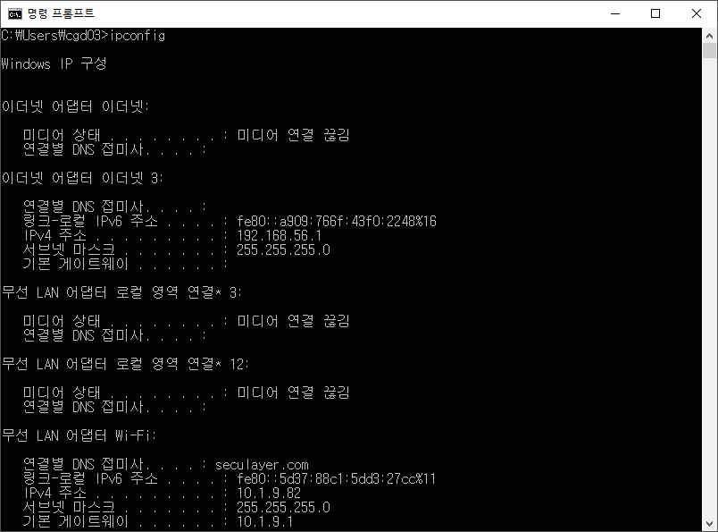 이 중에서 사용중이지 않은 IP를 골라서 쓰면 된다.!