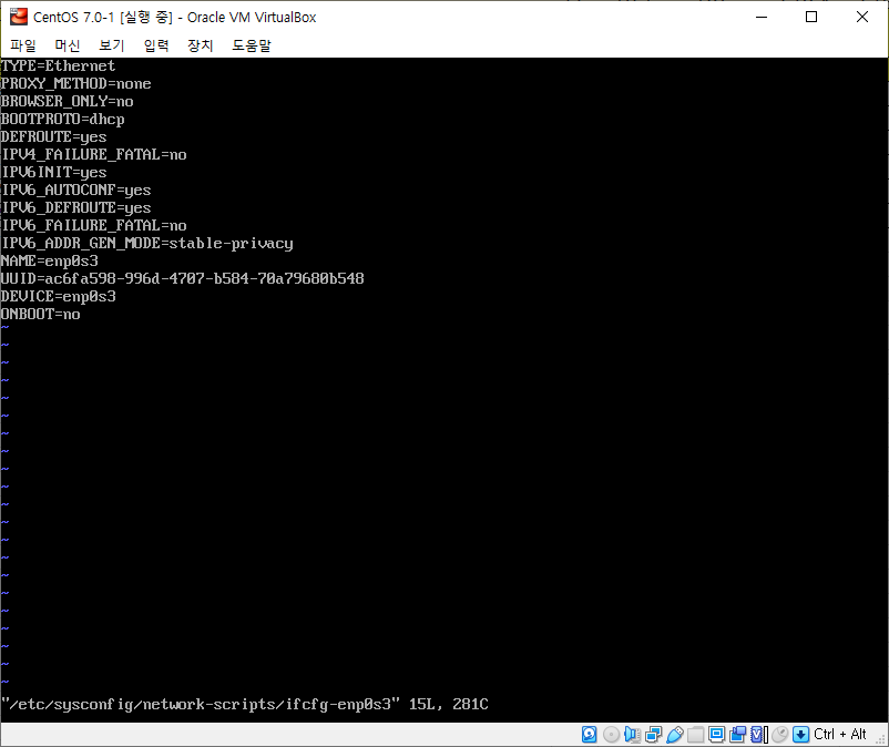 vi /etc/sysconfig/network-scripts/ifcfg-e 까지 입력 후 tab