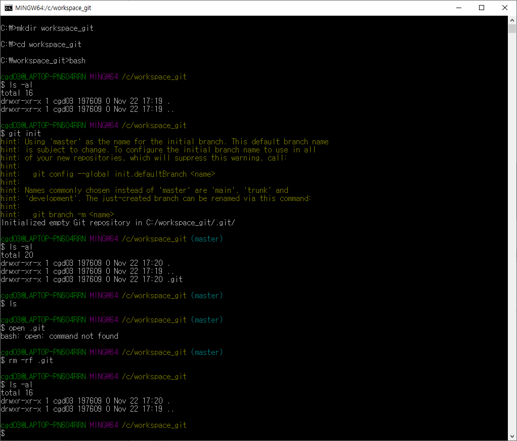 cgd03@LAPTOP-PN604RRN MINGW64 /c/workspace_git (master)