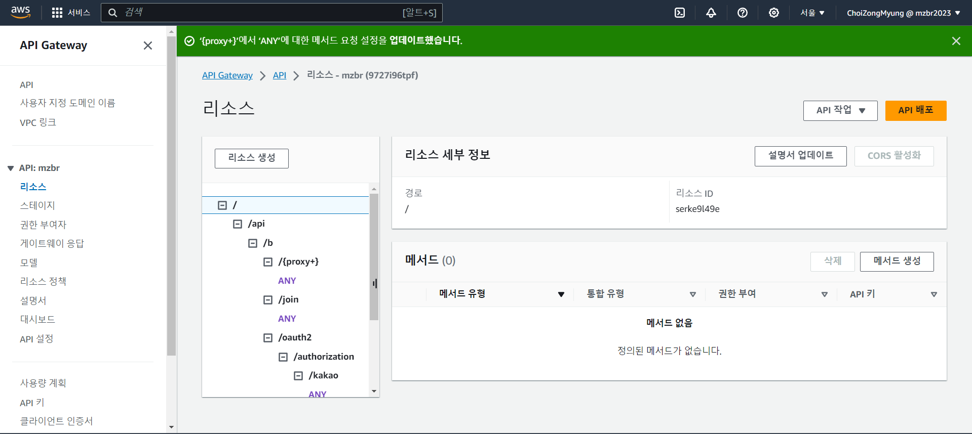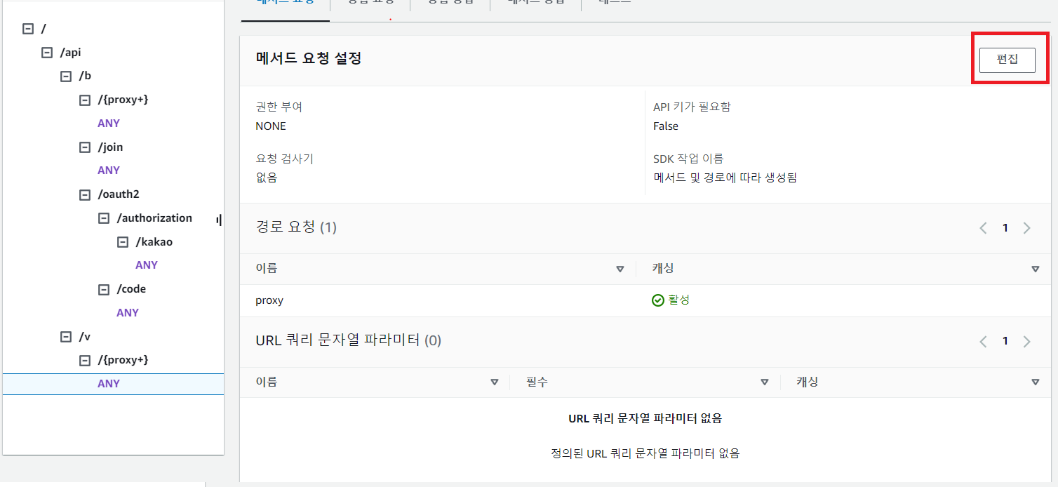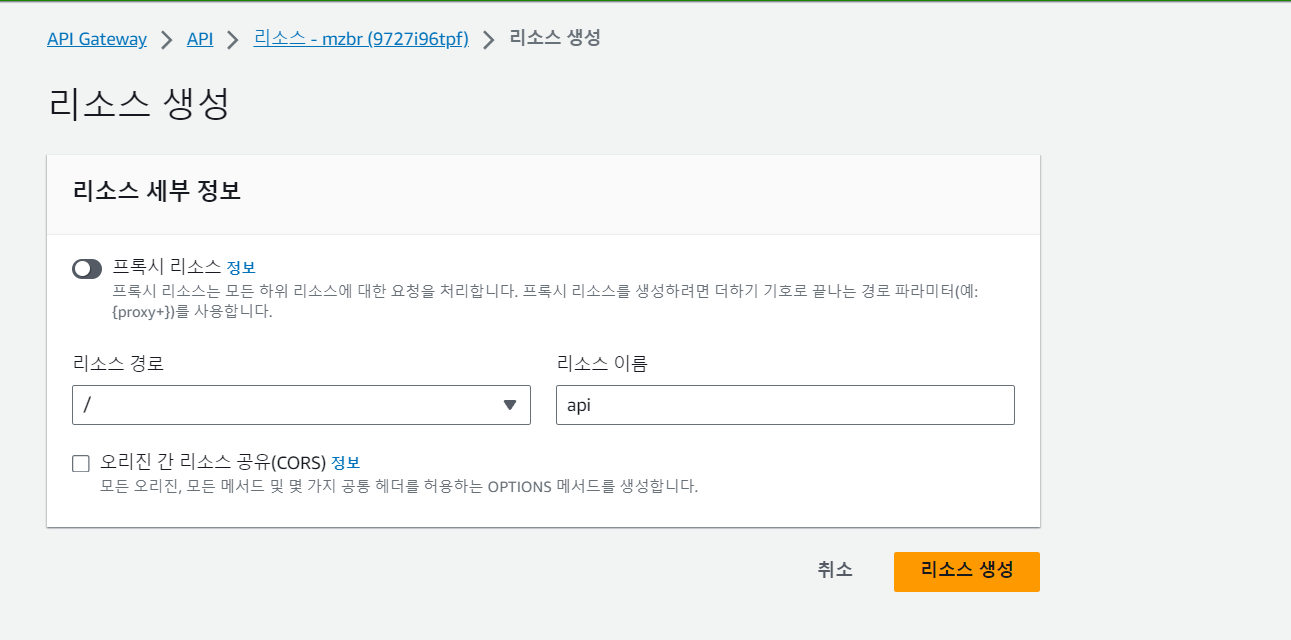 하위 모든 경로의 리소스를 생성하려면 프록시 리소스를 체크하면 된다.