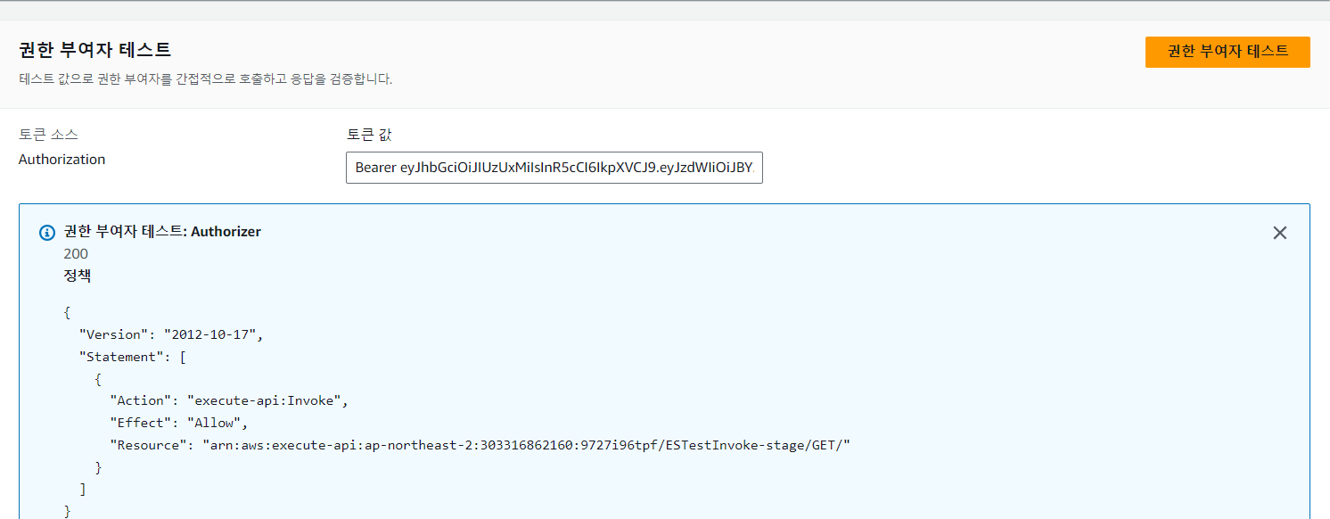 권한 부여자를 생성하고 토큰값을 입력하고 테스트를 해보면 다음과 같이 Allow 응답을 받을 수 있다.