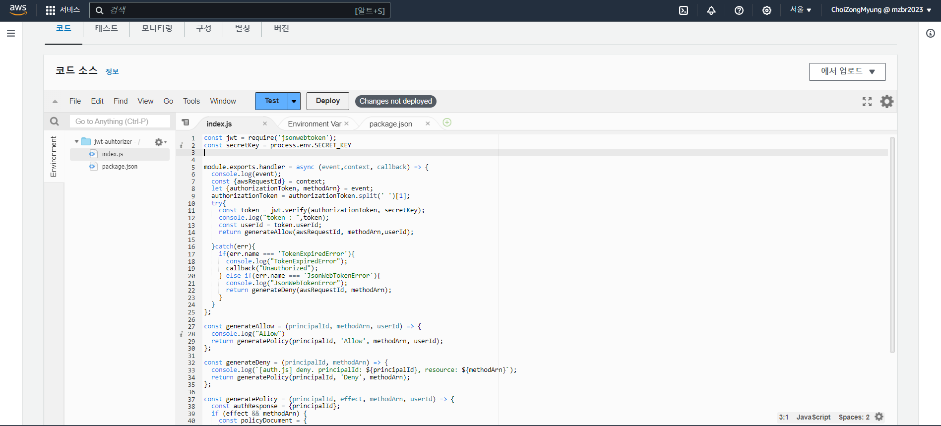 우리는 람다함수를 JWT 토큰 검증 및 ID를 추출하여 헤더에 실어 보내도록 할것이다.