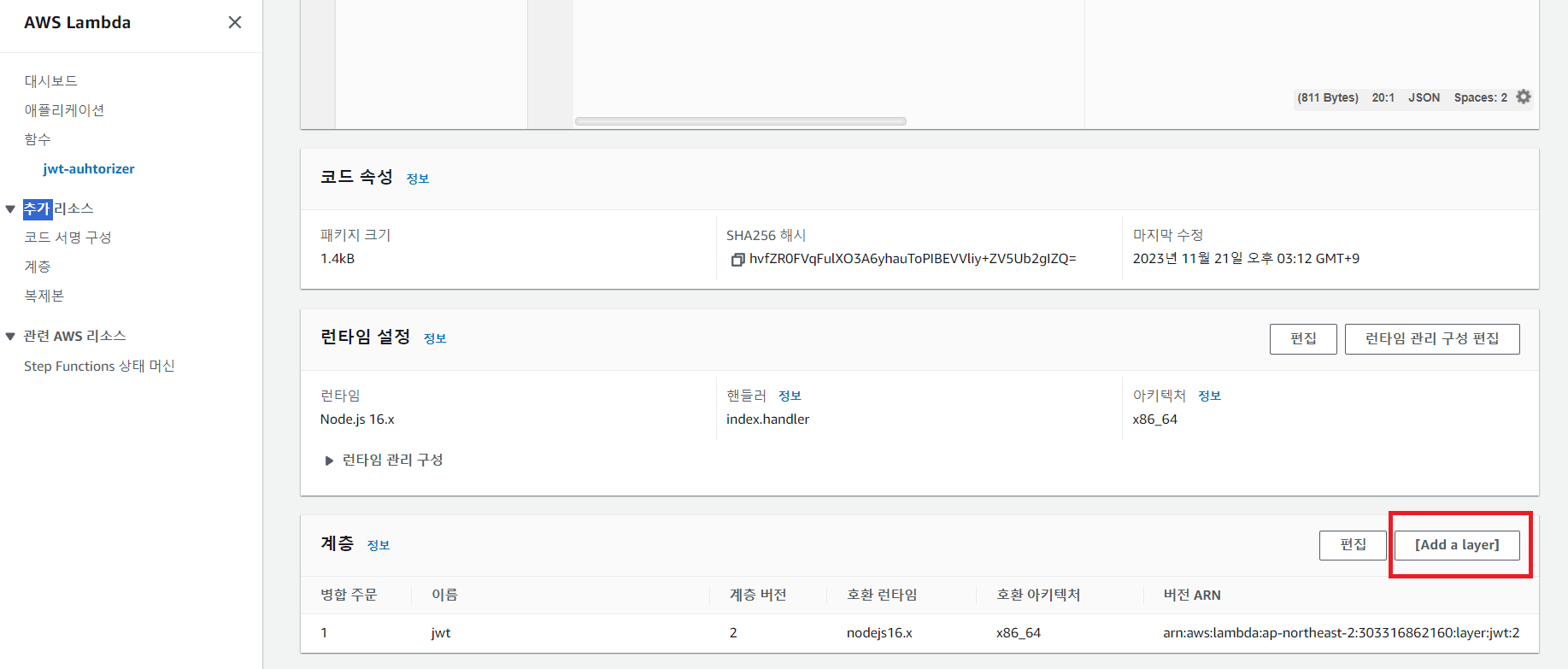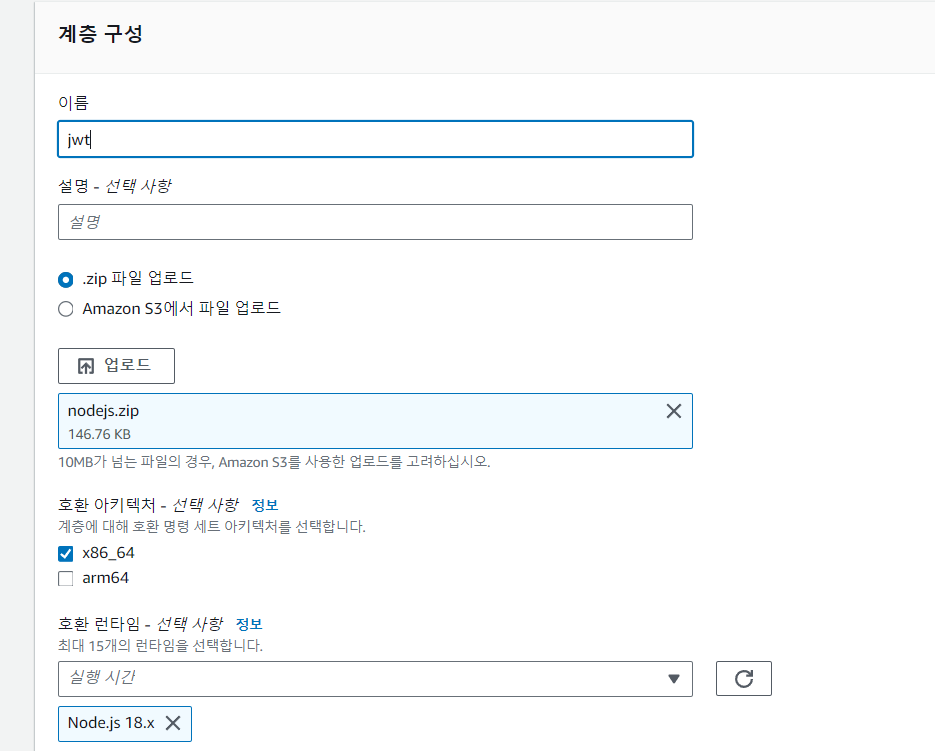 이제 nodejs 폴더를 zip 파일로 압축하고 계층을 생성해보자