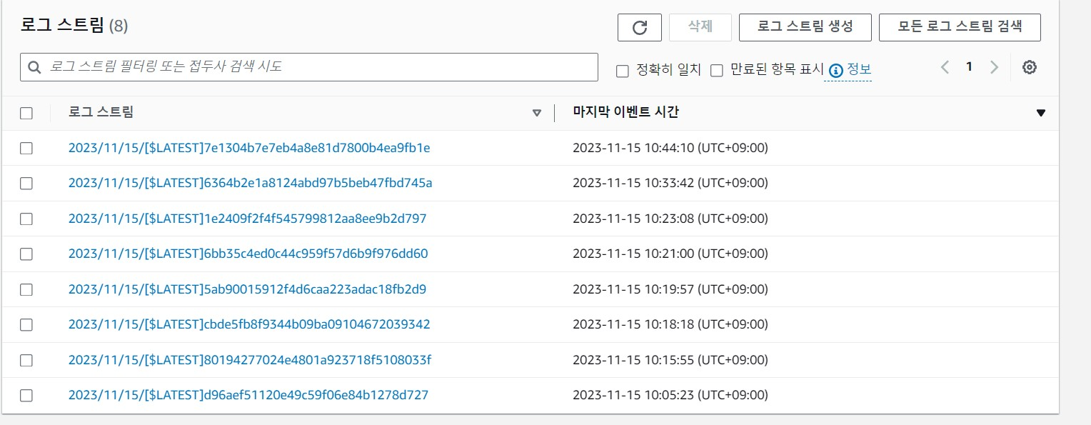이를 CloudWatch에서 로그로도 확인할 수 있다.
