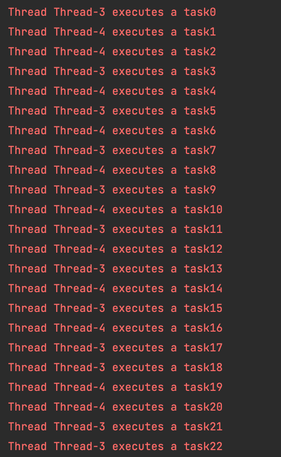 System.err.println("Thread " + Thread.currentThread().getName() + " executes a task" + finalI);