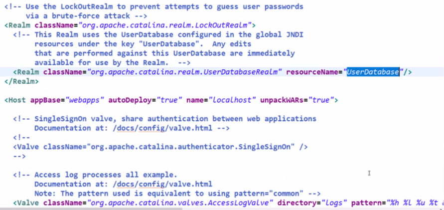 <!-- Tomcat server.xml 설정 중 일부 -->