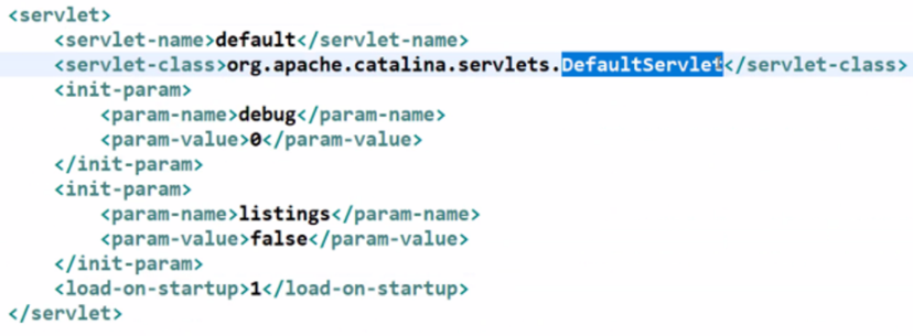 <servlet-name> 을 보면 이름이 default 인 서블릿이 등록된다는 것을 알 수 있다.