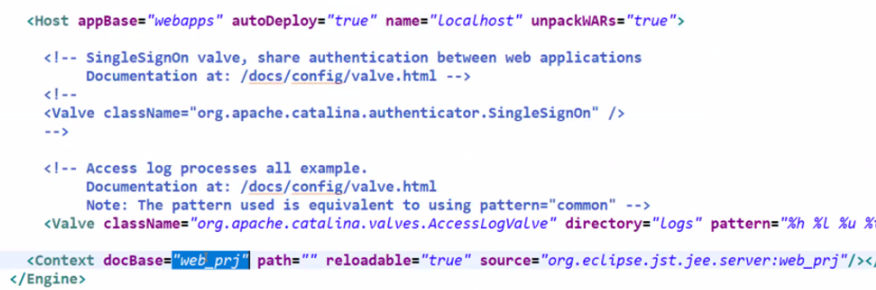 - <Context docBase =”web_prj” …> <Context docBase = “my_prj” … > <Context docBase = “user_prj” … >