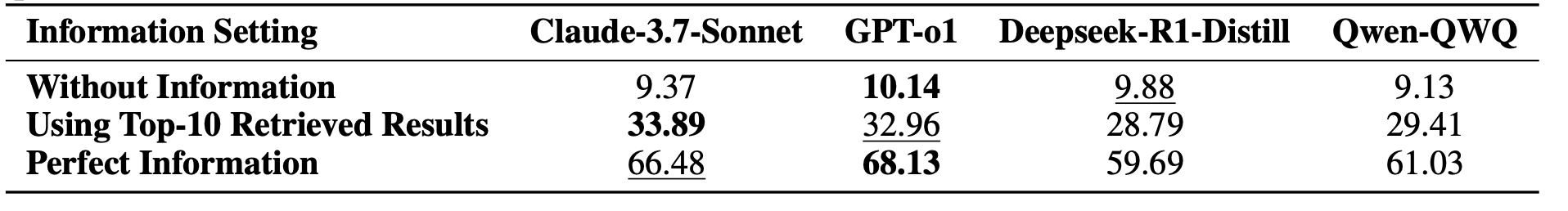- Perfect Context: 정확도 급상승 (Claude 66.48, GPT-o1 68.13)