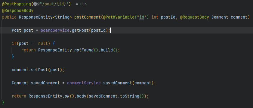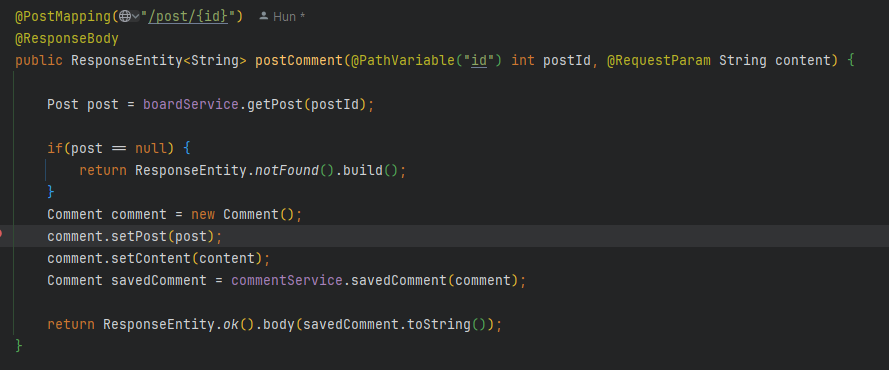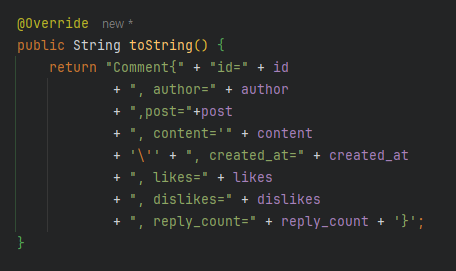 발생먼저 출력하는 부분인 댓글 Entity의 toString()