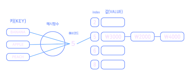 각각의 Key 값에 해시 함수를 적용해 배열의 고유한 index를 지정하고,