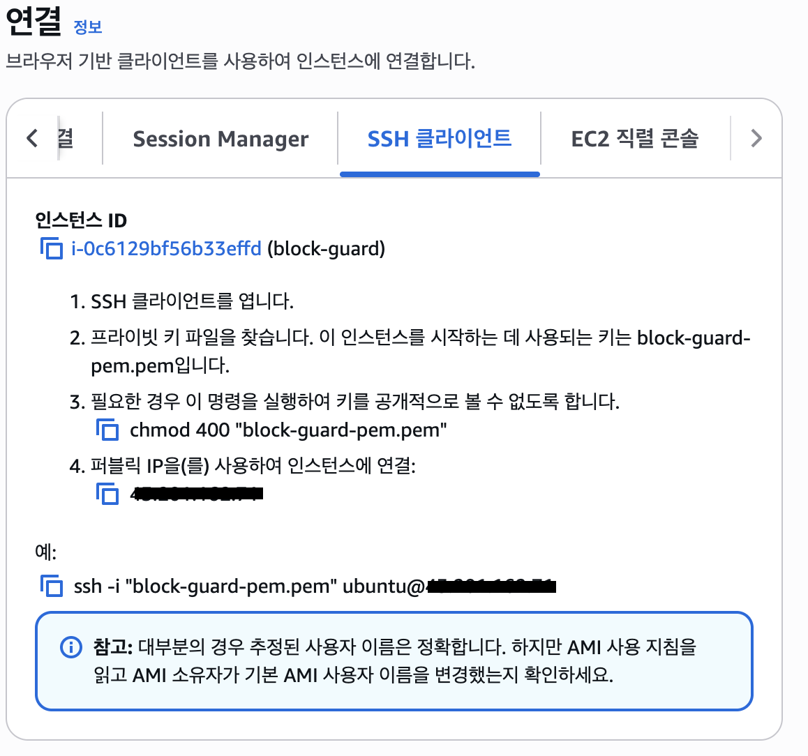 chmod 400 {.pem이름}.pem으로 권한 설정을 해준다. 그 다음에