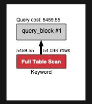 간단한 쿼리의 실행계획을 MySQL Workbench에서 확인한 결과 아래와 같은 이미지가 나옵니다.
