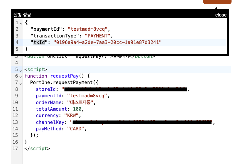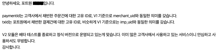 💡 txId : 포트원에서 채번한 결제건에 대한 고유 ID. V1기준 imp_uid와 동일한 의미