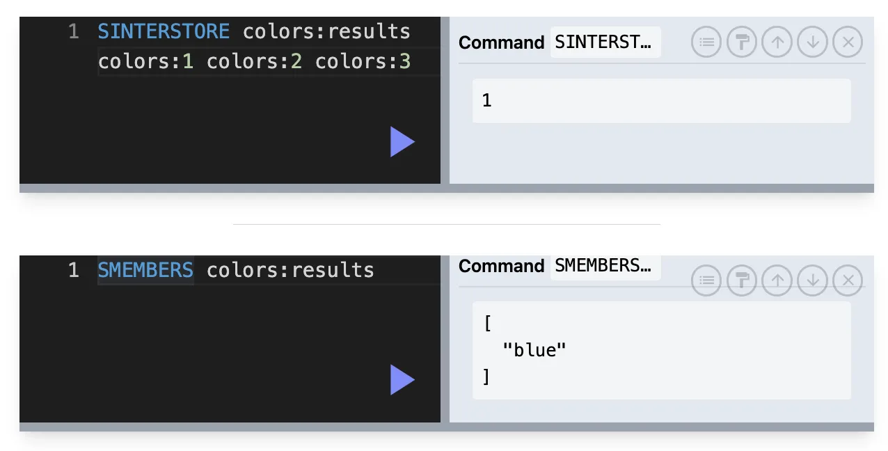 SINTERSTORE resultKey key1 key2 key3 …