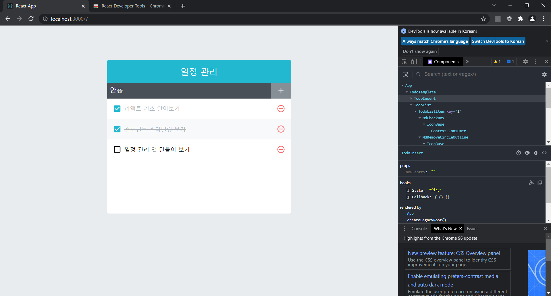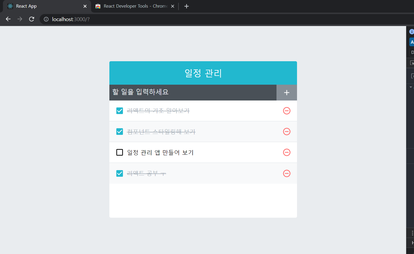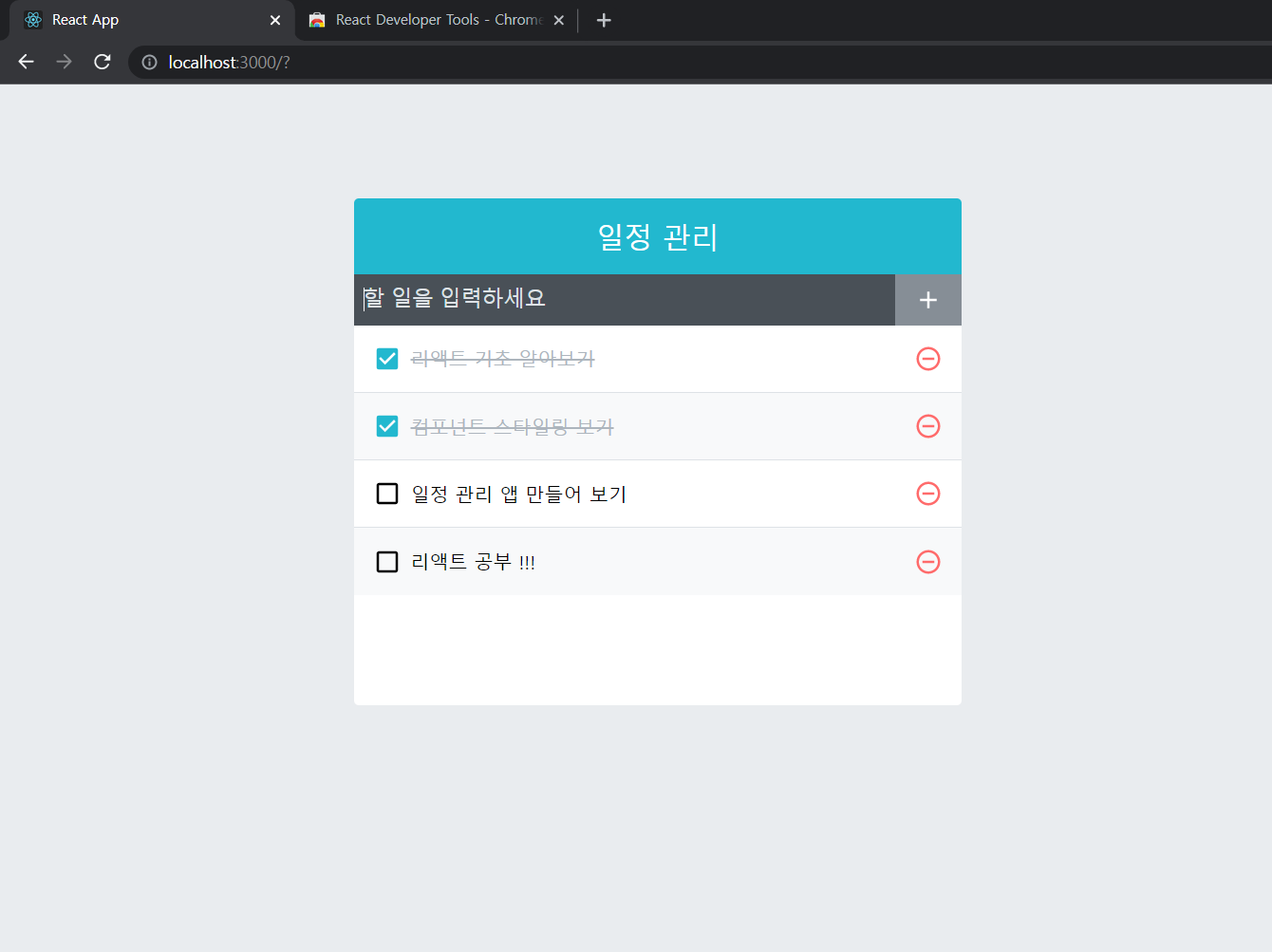 일정 관리 항목이 보일 TodoListItem과 TodoList를 만들어보자.
