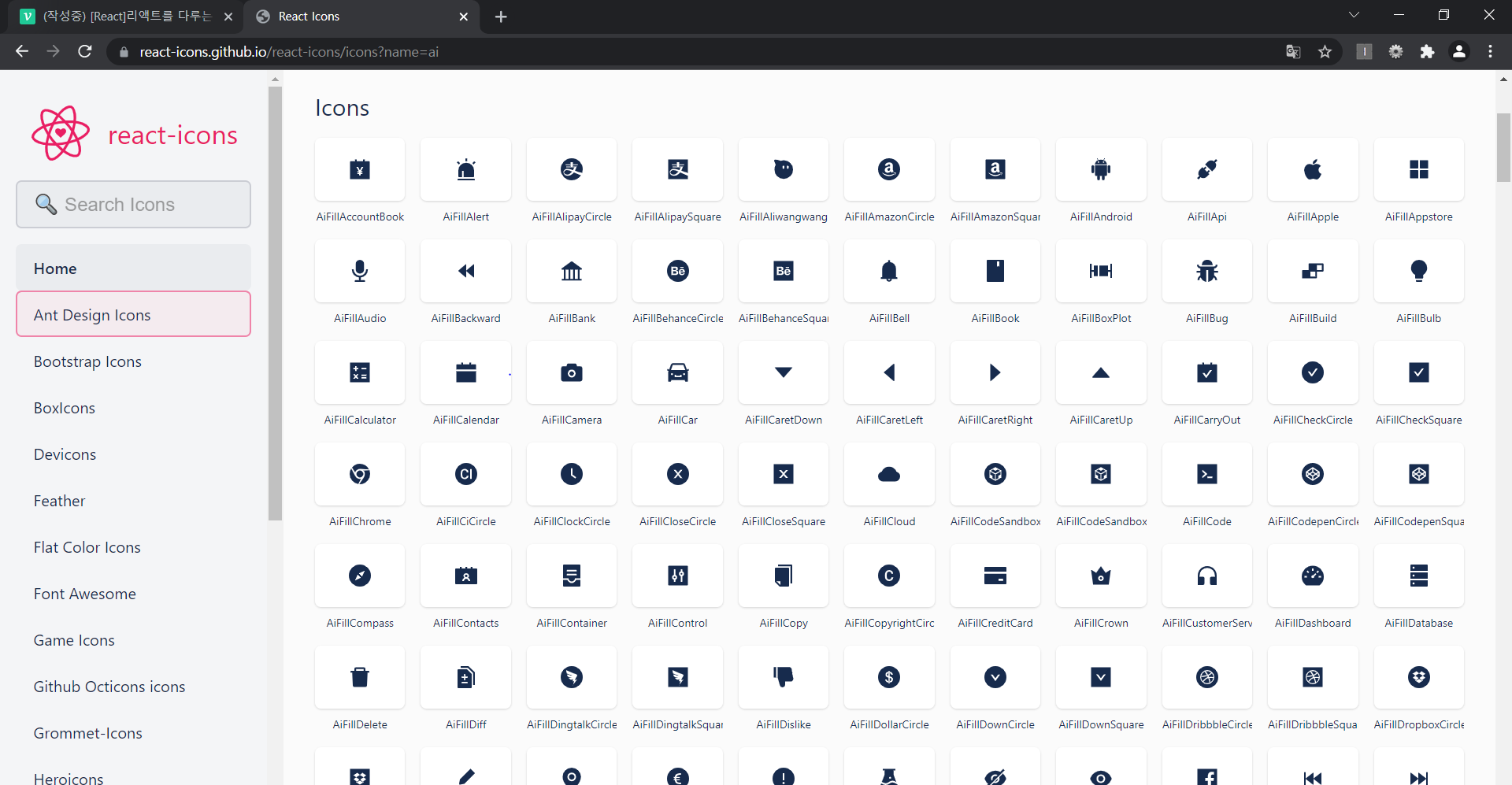 import{아이콘 이름} from 'react-icons/md';위에서 사용하고 싶은 아이콘을 선택하여 import구문을 이용해 컴포넌트 처럼 사용가능✔ 결과 확인