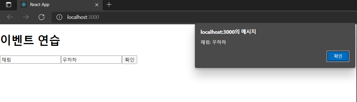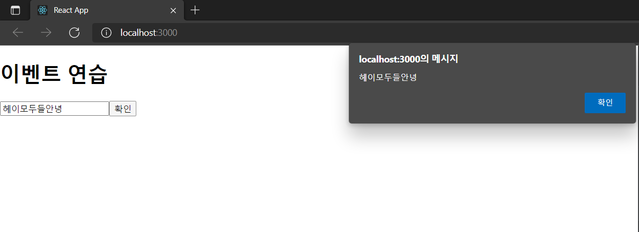 alert을 이용하여 현재 state값을 경고창으로 보여줌. ✔ 결과 확인