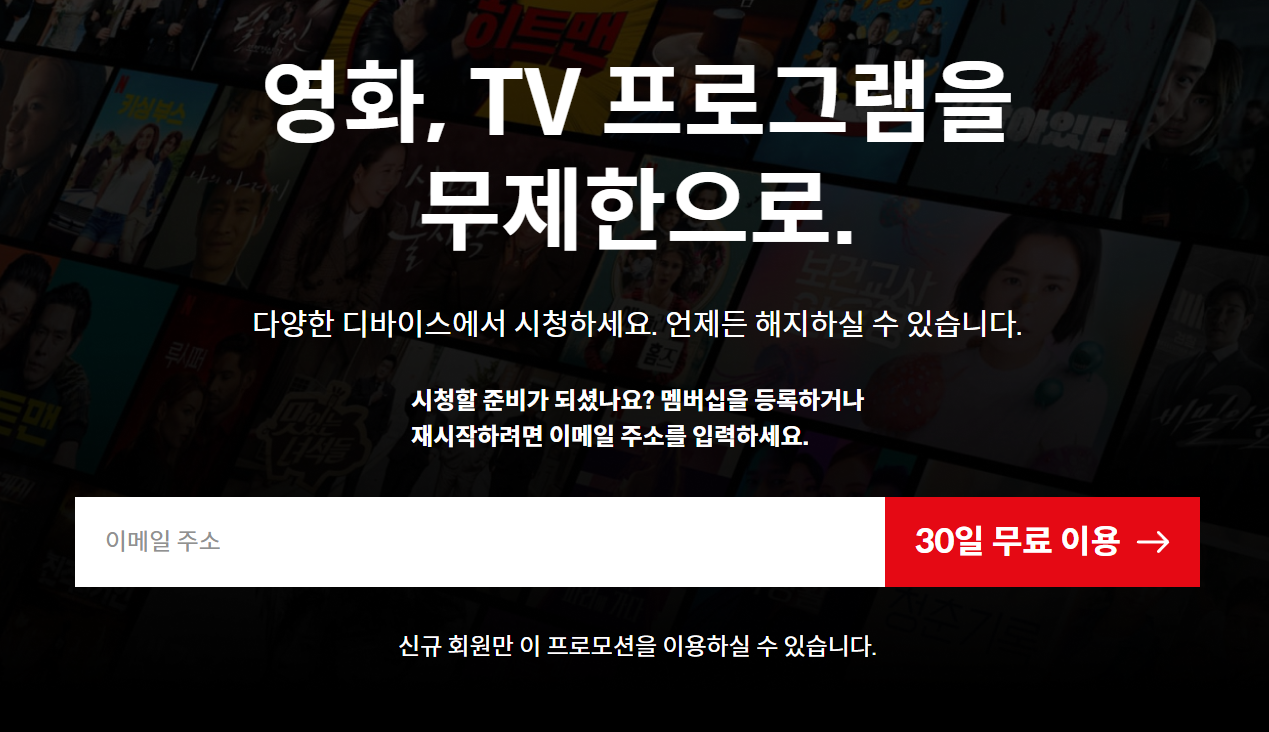 <h2 class="sr-only">넷플릭스 멤버십 등록 또는 재시작</h2>